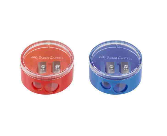 Ascutitoare Plastic Dubla Cu Container Twist Off Rosie/Albastra Faber-Castell