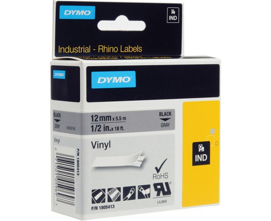 Banda ID1, vinil, 12 mm x 5,5 m, negru / gri, DYMO