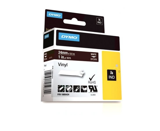Banda ID1, vinil, 24 mm x 5,5 m, alb / maro, DYMO