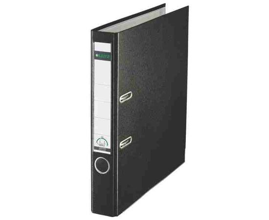 Biblioraft A4, plastifiat PP/paper, margine metalica 52 mm, LEITZ 180 - negru