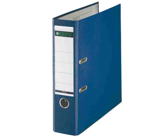 Biblioraft A4, plastifiat PP/paper, margine metalica 80 mm, LEITZ 180 - albastru