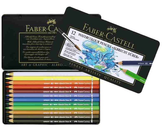 Creioane Colorate Acuarela A.Durer Faber-Castell 12 culori, cutie metal