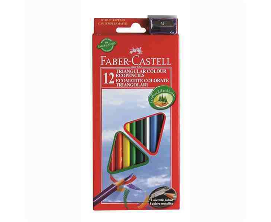 Creioane Colorate Triunghiulare + Ascutitoare Eco Faber-Castell 12 culori