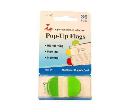 Film index autoadeziv 45 x 25 mm, 36 file/set, colturi rotunjite, Stick"n Pop-up (cu dispenser) - transparent/rosu
