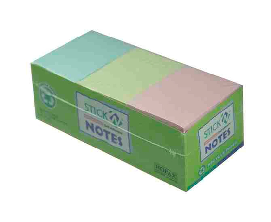 Notes autoadeziv 38 x 51 mm, 12 x 100 file/set, Stick"n - 3 culori pastel - hartie reciclata