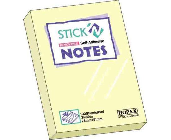 Notes autoadeziv 76 x 51 mm, 100 file, Stick"n - galben pastel