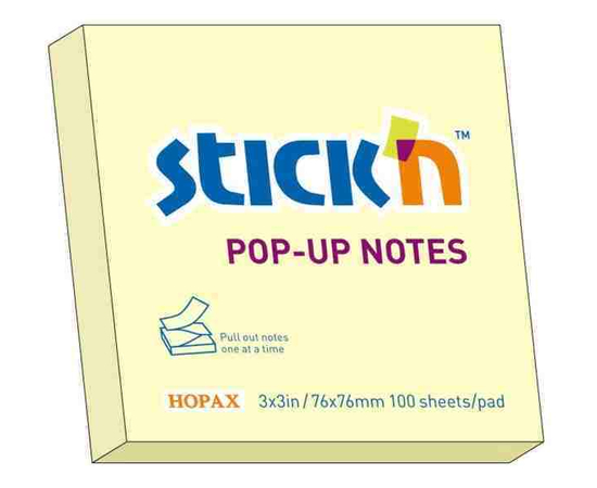 Notes autoadeziv 76 x 76 mm, 100 file, Stick"n Pop-up - galben pastel