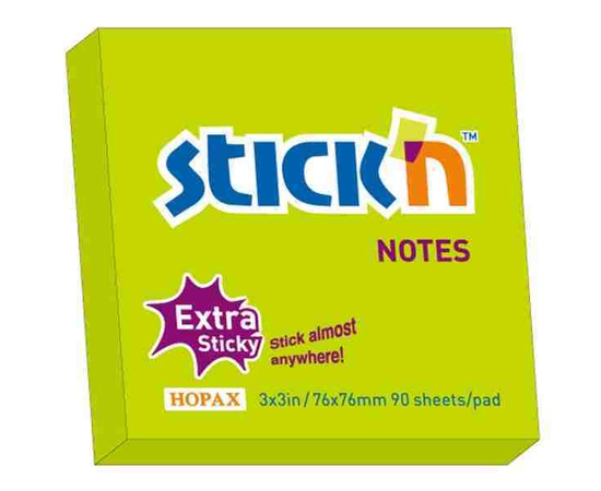 Notes autoadeziv extra-sticky 76 x 76mm, 90 file, Stick"n - verde neon