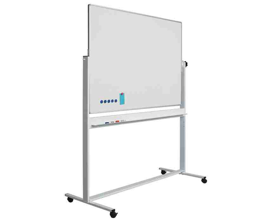 Tabla alba magnetica, dubla fata, rotativa, 100 x 200 cm, pe stand mobil, profil aluminiu RC, SMIT