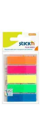 Stick index plastic transparent color 45 x 12 mm, 5 x 20 file/set, Stick"n - sageata - 5 culori neon