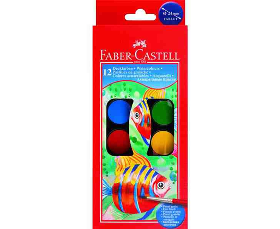 Acuarele 12 culori Pensula Faber-Castell pastila de 24 mm