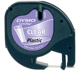 Benzile DYMO LetraTag din plastic transparent  se imprima termic, eliminand astfel eventualele probleme ce ar putea aparea folosind cartuse cu cerneala. Benzile DYMO LetraTag din plastic sunt rezistente la rupere, apa, dar si la majoritatea solventilor mai slabi; drept...