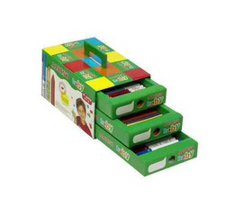 Cutie carton, utila pentru organizarea materialelor pentru scoala. Contine: 32 carioci, 8 culori x 4 buc., 36 creioane cerate, 12 culori x 3 buc., 36 creioane colorate, 12 culori x 3 buc.