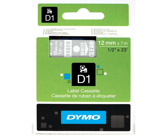 Banda D1, 12 mm x 7 m, alb / transparent, DYMO
