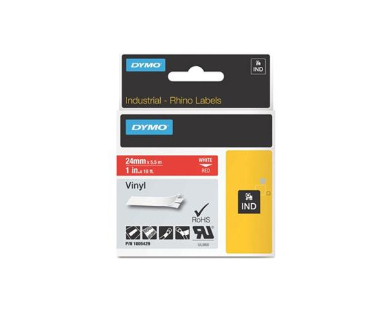 Banda ID1, vinil, 24 mm x 5,5 m, alb / rosu, DYMO