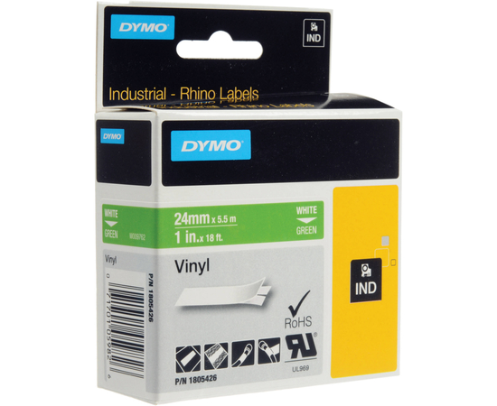 Banda ID1, vinil, 24 mm x 5,5 m, alb / verde, DYMO
