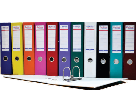 Biblioraft A4, plastifiat PP/paper, margine metalica, 75 mm, Optima Basic - alb