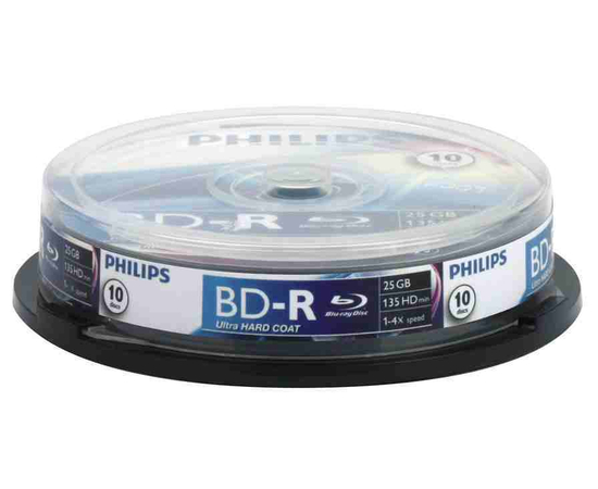 Blu-Ray disk Recordable, 25GB, 6x, 10 buc/Cakebox, PHILIPS
