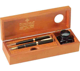 Cutie din lemn pentru instrumente de scris, calimara inclusa, DIPLOMAT - wenge