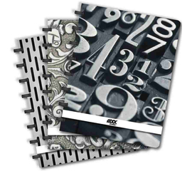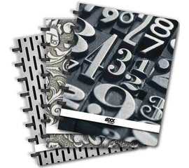 Cu microperforatii pentru desprindere usoara.  Contine rigla flexibila detasabila in interior; coperti din carton in culori asortate. Hartie Optik, care nu permite ca cerneala sa se impregneze in hartie, chiar daca se foloseste un stilou pentru scriere.  Hartie de 90gr/mp...