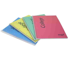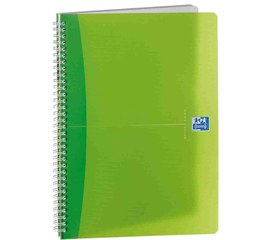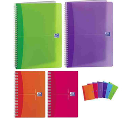 Caiet cu spirala, hartie alba fara clor de 80 gr/mp. Coperta din polipropilena (PP) transparenta color.  Numar file: 60.