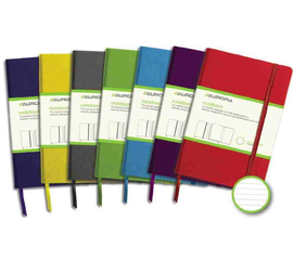 Hartie cream de calitate, de 80 gr/mp. Coperti din carton rigid color. Inchidere cu elastic.