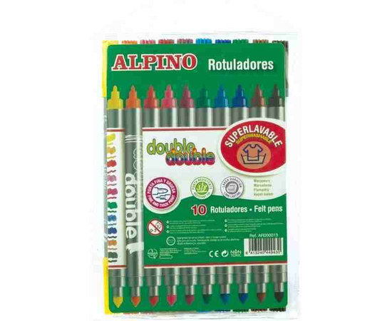 Carioca cu 2 capete, varf subtire/gros, 10 culori/set, ALPINO Double