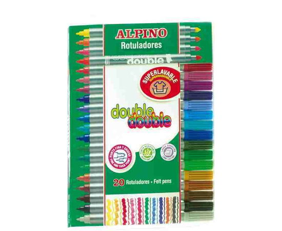 Carioca cu 2 capete, varf subtire/gros, 20 culori/set, ALPINO Double