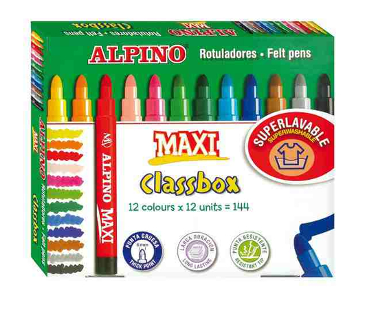 Carioca lavabila, 12 x 12 culori/cutie, ALPINO Maxi Economy pack - ideale pentru scoli si gradinite