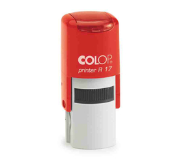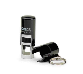 • Stampila rotunda Printer R, cu breloc. Dimensiunea amprentei este de 12 sau 17 mm, iar numarul de linii este fie de 2, fie de 3. In plus, culorile disponibile sunt urmatoarele: negru, albastru, rosu