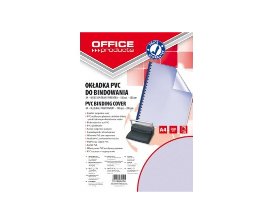 Coperta plastic PVC, 200 microni, A4, 100/top Office Products - albastru transparent