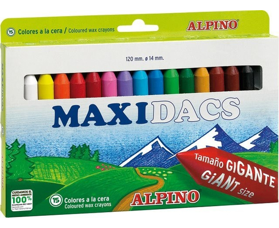 Creioane cerate soft, cutie carton, 15 culori/cutie, ALPINO MaxiDacs