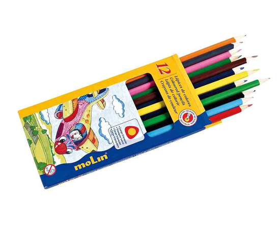 Creioane colorate, corp triunghiular, 12 culori/set, MOLIN Color Plus