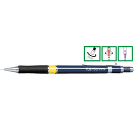 Zona grip anti-alunecare cauciucata. Varf retractabil. Radiera lunga, retractabila. Clip rezistent. Culori metalizate atractive. Doua variante de grosimi ale minei: 0.5 mm (1345) si 0.7 mm (1347).