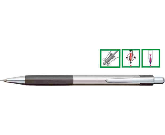 Creion mecanic metalic cu rubber grip, 0,5mm, varf metalic, PENAC Pepe - accesorii negre