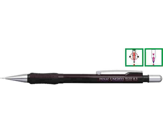 Creion mecanic profesional, 0,3mm, varf cilindric retractabil, PENAC UM 5033 - corp negru