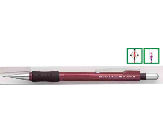 Creion mecanic profesional, 0,9mm, varf cilindric retractabil, PENAC UM 5039 - corp bordeaux