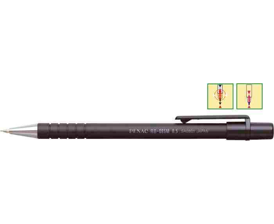 Creion mecanic rubber grip 0,5mm, con si varf metalic, PENAC RB-085M - corp negru