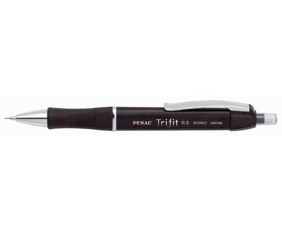 Creion mecanic rubber grip, 0,5mm, varf si accesorii metalice, PENAC TRIFIT Metallic - corp negru