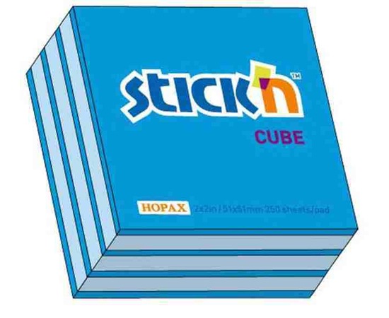 Cub notes autoadeziv 50 x 50 mm, 250 file, Stick"n - albastru neon/albastru pastel