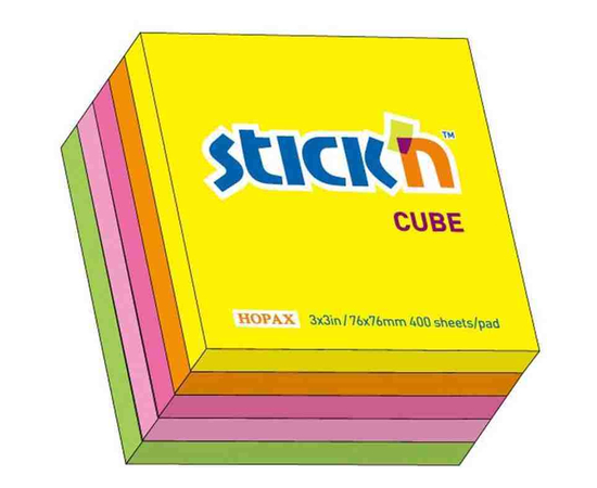Cub notes autoadeziv 76 x 76 mm, 400 file, Stick"n - 5 culori fluorescente