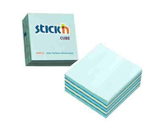 Cub notes autoadeziv 76 x 76 mm, 400 file, Stick"n - albastru neon/albastru+galben pastel