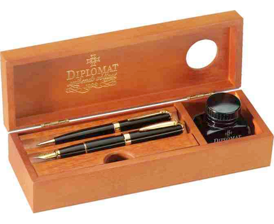 Cutie din lemn pentru instrumente de scris, calimara inclusa, DIPLOMAT - cherry wood