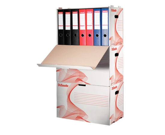 Se pot arhiva in ea 3 bibliorafturi sau 3 cutii Boxy de 8 cm.