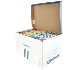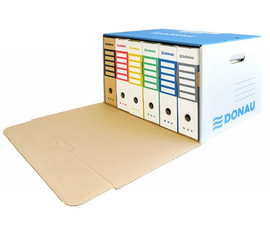 Ideala pentru arhivarea si transportarea a aproxfimativ 10 dosare suspendate. Index pe 4 laturi pentru identificarea continutului. Dotata cu orificiu pentru o manevrare usoara. Dimensiuni : 345 x 120 x 245 mm