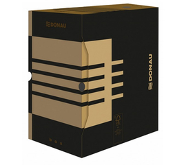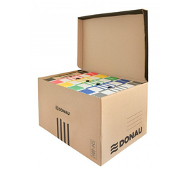 Cutie pentru depozitare si transport cu capac integrat.  Se pot arhiva in ea 3 bibliorafturi sau 3 cutii Boxy de 8 cm.  Produs ecologic, fabricat din carton reciclat 100%.