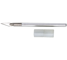 • Cutit art, pentru hobby, cu maner rotund din metal si capac de protectie a lamei. Acesta vine cu trei lame de rezerva