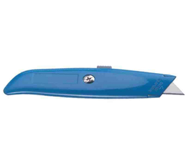 Din material plastic cu sina metalica in care culiseaza lama.  Lama din otel inoxidabil, dimensiuni (Lxl): 90 x 9 mm. Sistem de blocare a lamei.  Se livreaza cu 2 lame de rezerva.
