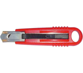 Din material plastic,cu sina metalica in care culiseaza lama.  Lama din otel inoxidabil, dimensiuni (L x l): 75 x 15 mm. Sistem cu arc retractabil a lamei. (respecta normele europene de siguranta ).