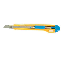Din material plastic cu sina metalica in care culiseaza lama. Lama din otel inoxidabil, dimensiuni (Lxl): 90 x 9 mm. Sistem de blocare a lamei. Se livreaza cu 2 lame de rezerva.